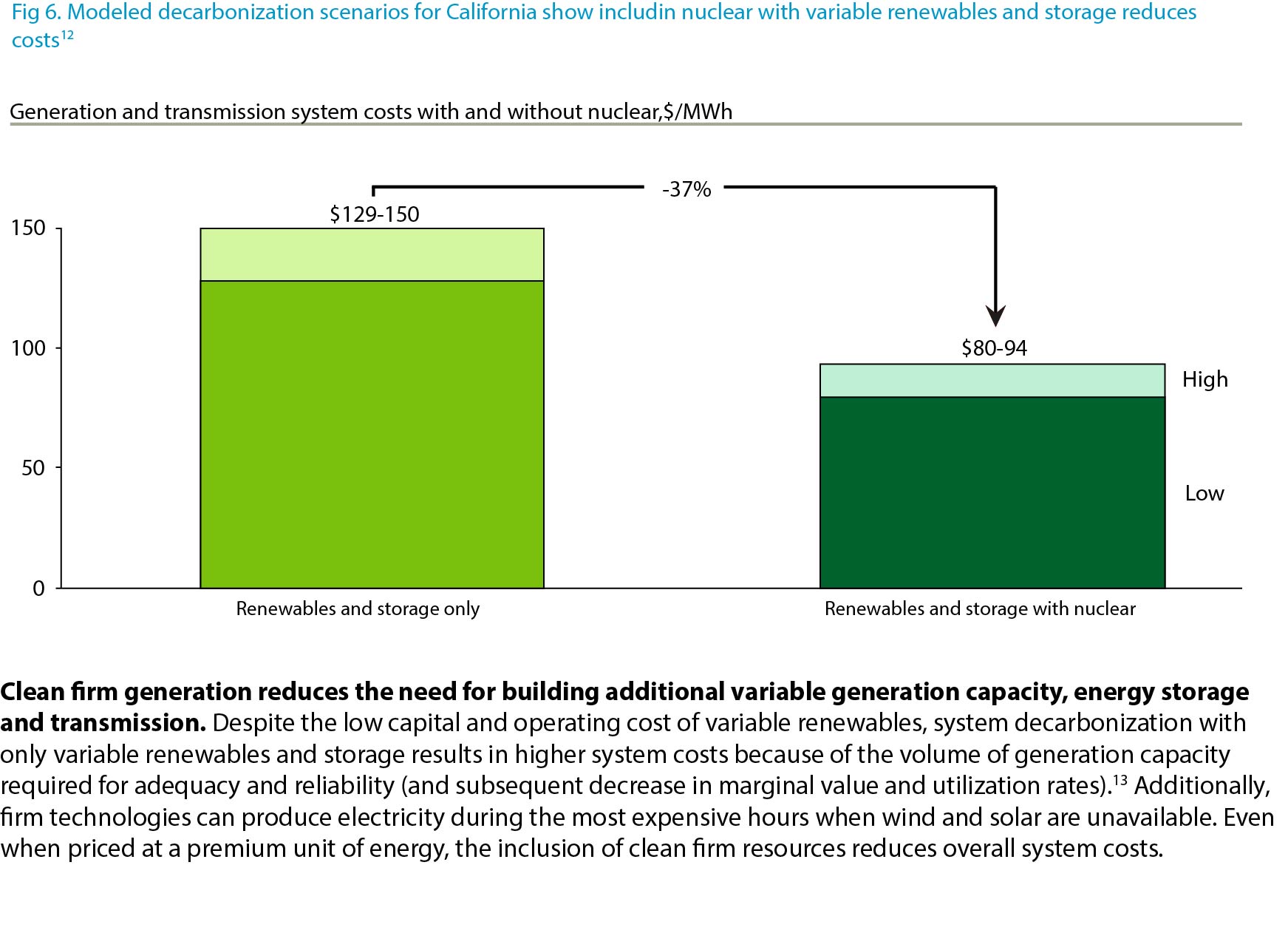 DOE-rapporten viser tydelig at et energisystem som inkluderer kjernekraft, er billigere enn et system som utelukkende består av fornybare energikilder og batterier. Konkret viser analysene at et system uten kjernekraft i California vil være 60 prosent dyrere enn et system som kombinerer fornybart, batterier og kjernekraft.